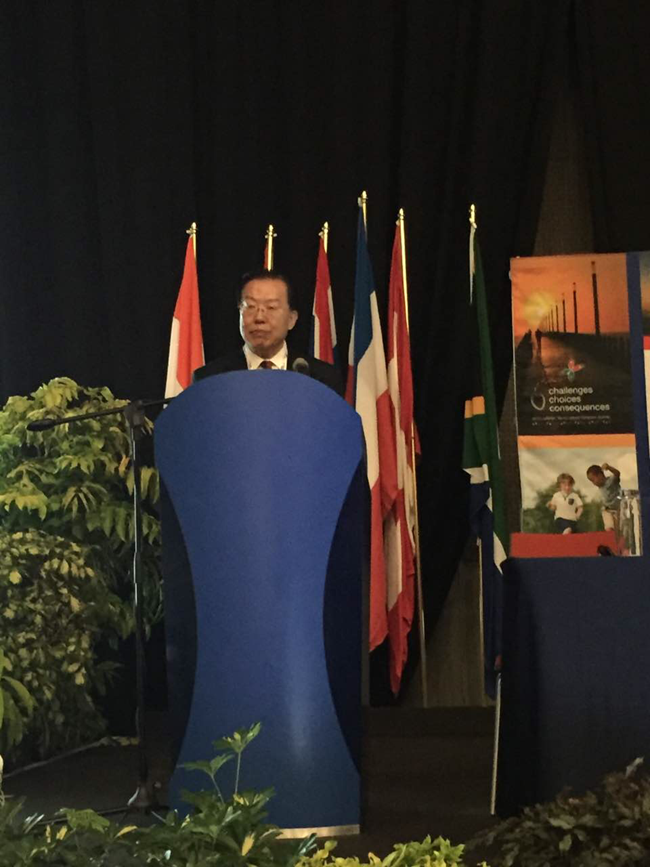 6月28日,張學(xué)武董事長(zhǎng)在南非德班參加2016年世界休閑大會(huì)。