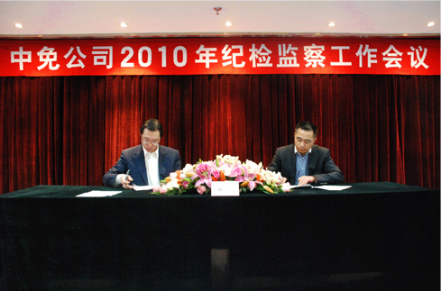 本次會議的主題是深入貫徹中紀委十七屆五次全會、國資委和國旅集團2010年紀檢監(jiān)察工作會議精神,總結(jié)公司2009年黨風建設(shè)和反腐倡廉工作,提出2010年工作要求,由公司黨委書記盧路分別與公司經(jīng)營班子成員和部門以上負責人、在京子公司主要負責人簽訂2010年《廉潔從業(yè)責任書》。